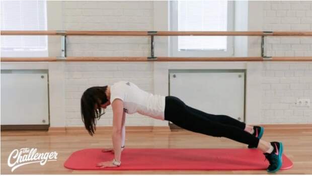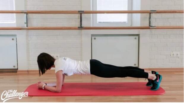 Следим за плечами, бедрами и спиной. Разница с предыдущей планкой лишь в том, что опираться надо на согнутые под углом 90 градусов ноги. Важно не опускать таз, не запрокидывать голову и следить за прямой линией. Этот вид планки не только укрепляет мышцы рук, пресса и ног, но и растягивает мышцы в области плечевого пояса.