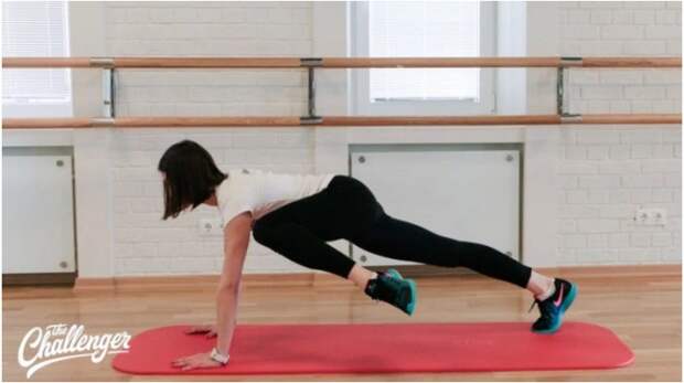 Этот усложненный вариант классической планки помимо мышц брюшного пресса хорошо прорабатывает большую грудную мышцу, дельтовидную мышцу и квадратную мышцу поясницы.